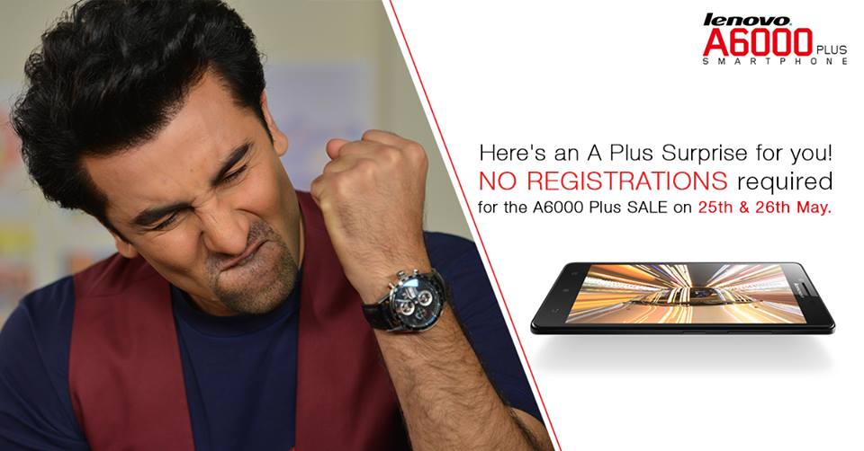 Lenovo A6000 Plus with 2 GB RAM, 16 GB ROM priced Rs. 7499 on Flipkart will be available without registration in Open Sale on May 25th and May 26th. These two days which coincide with Flipkart's Electronics Sale, after which the flash sales will resume.