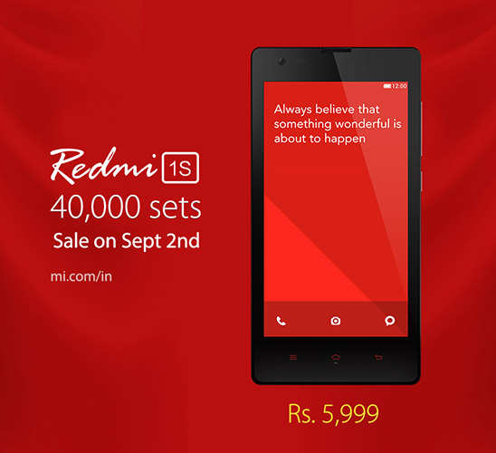 Xiaomi has learnt its lesson with the flash sales of the Mi3 and now they are going to have double the units of the Redmi 1S for sale on 2nd September. Xiaomi has said they will have have 40,000 Redmi 1S doe sale on Flipkart.